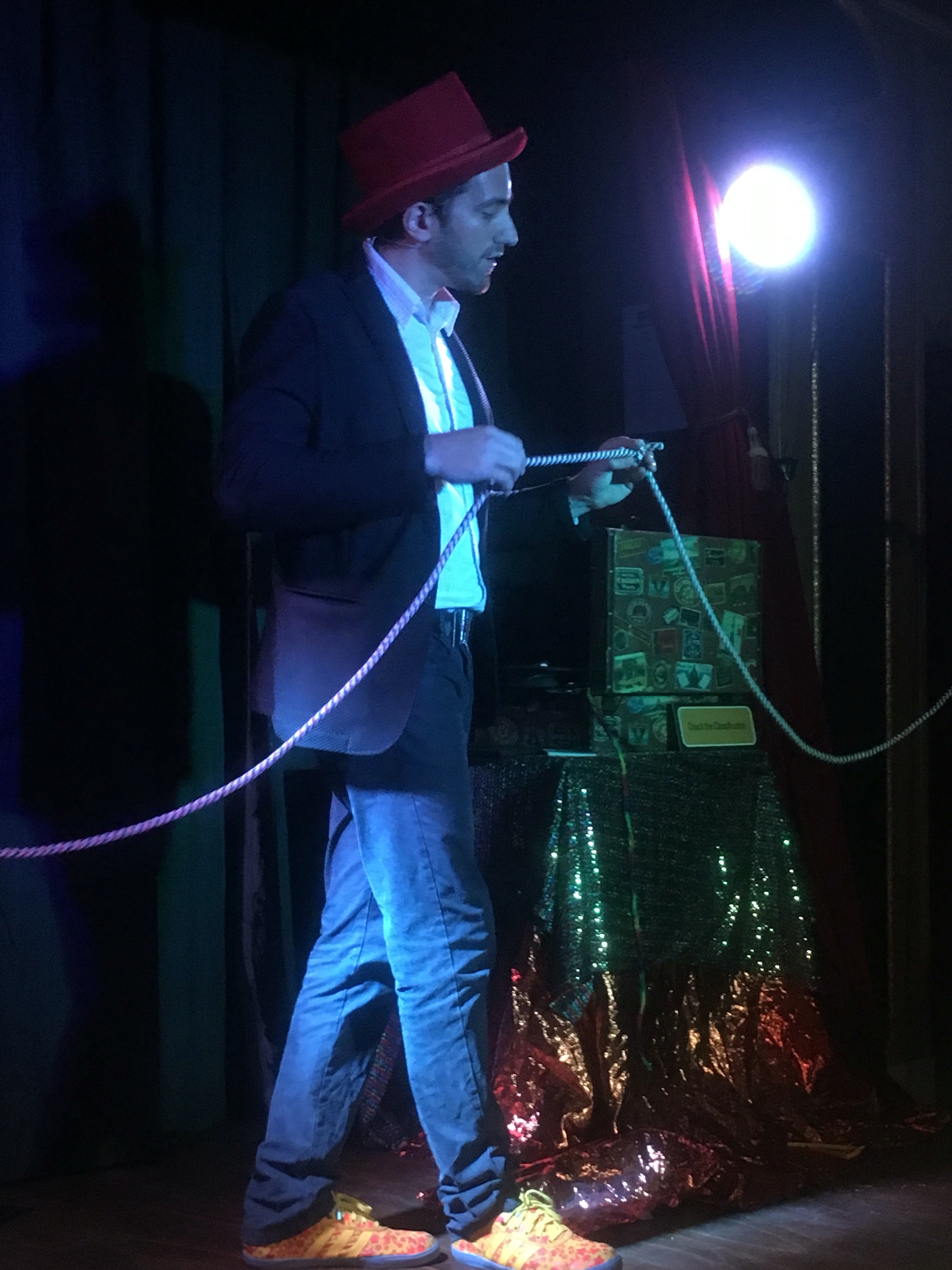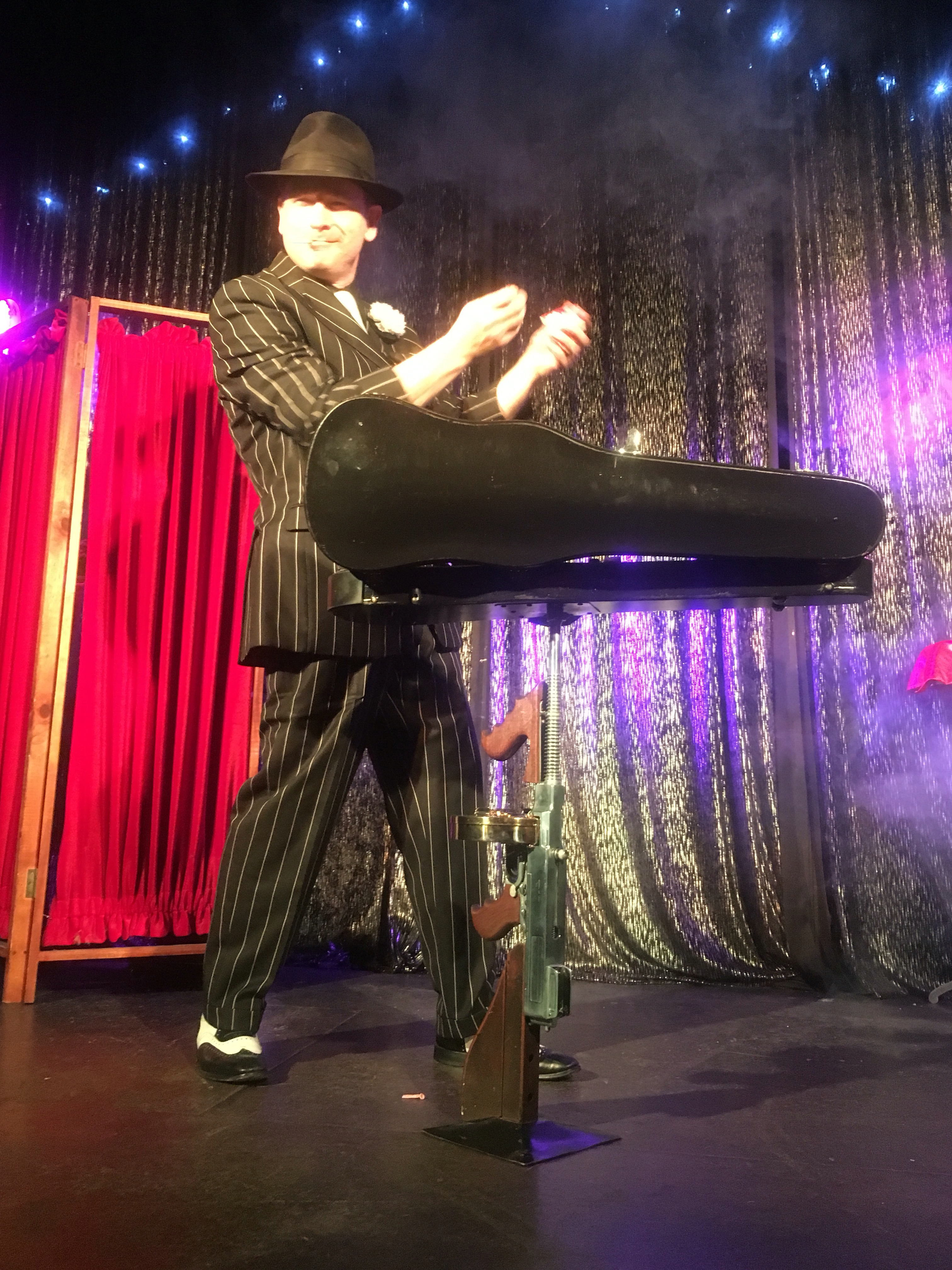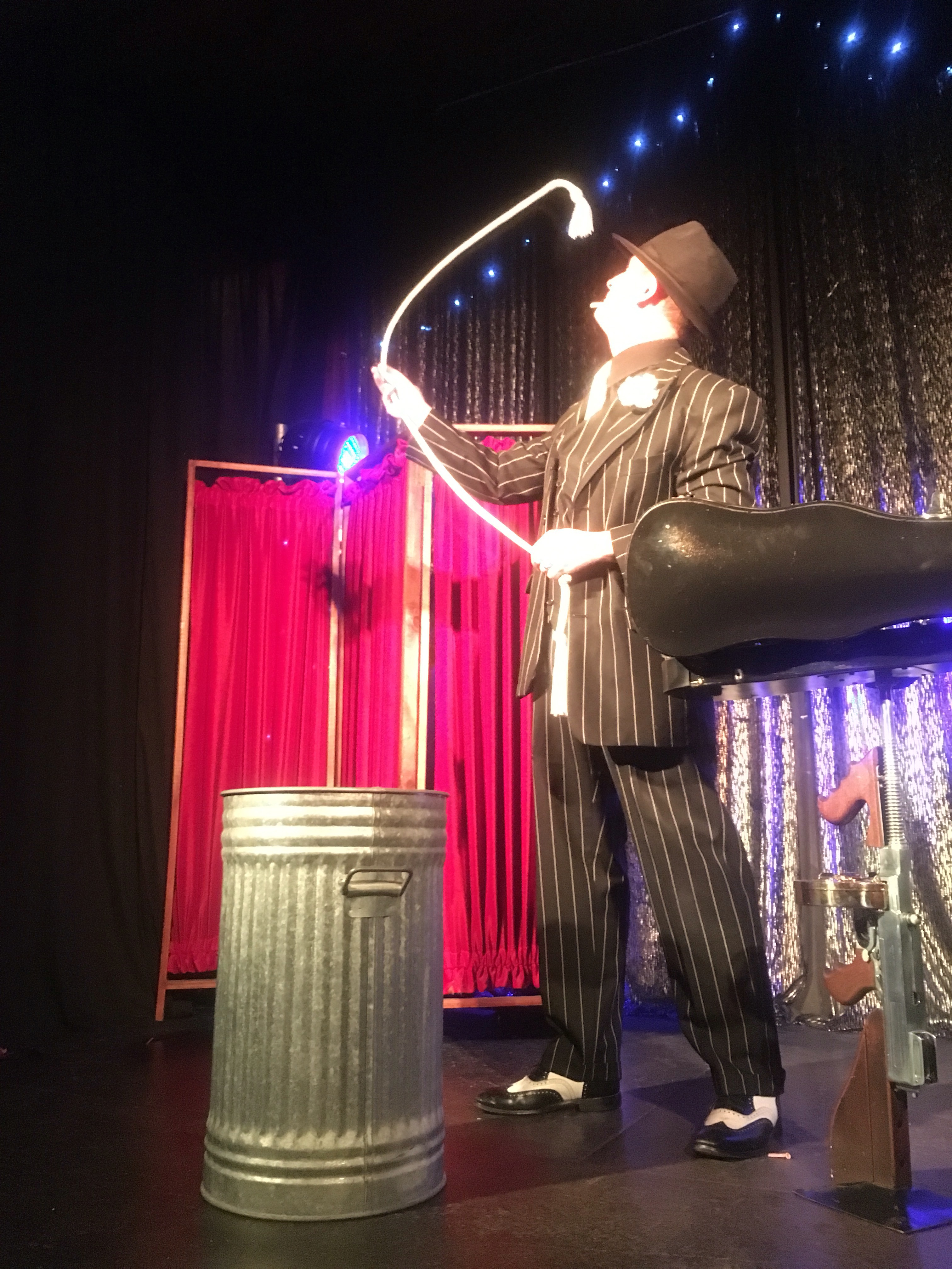 The headline act for the May show was a very popular magician in the Melbourne magic scene…in fact if you have seen magic in Melbourne it is a good chance it was the spellbinding magic of Anthony DeMasi! Anthony’s shows are never complete without his menagerie of bunny and dove friends. A friend of mine on my table was handed a bunny in a hat to cuddle, which elicited many coo’s and gentle squealing from all on the table. Anthony is so kind to let audience members mind and pat his rabbits while we all enjoy his magic. Anthony’s performances often end up being madcap journeys into the world of magic, and this performance was no different. Many moments of wonder were created through Anthony’s magic with serviettes, rope, cards and plenty of gags. This style of magic (and great use of the stage space) gives a surreal aspect to the performance. Anthony’s magic takes me to another place, so if you ever get a chance to see him perform please take that opportunity!