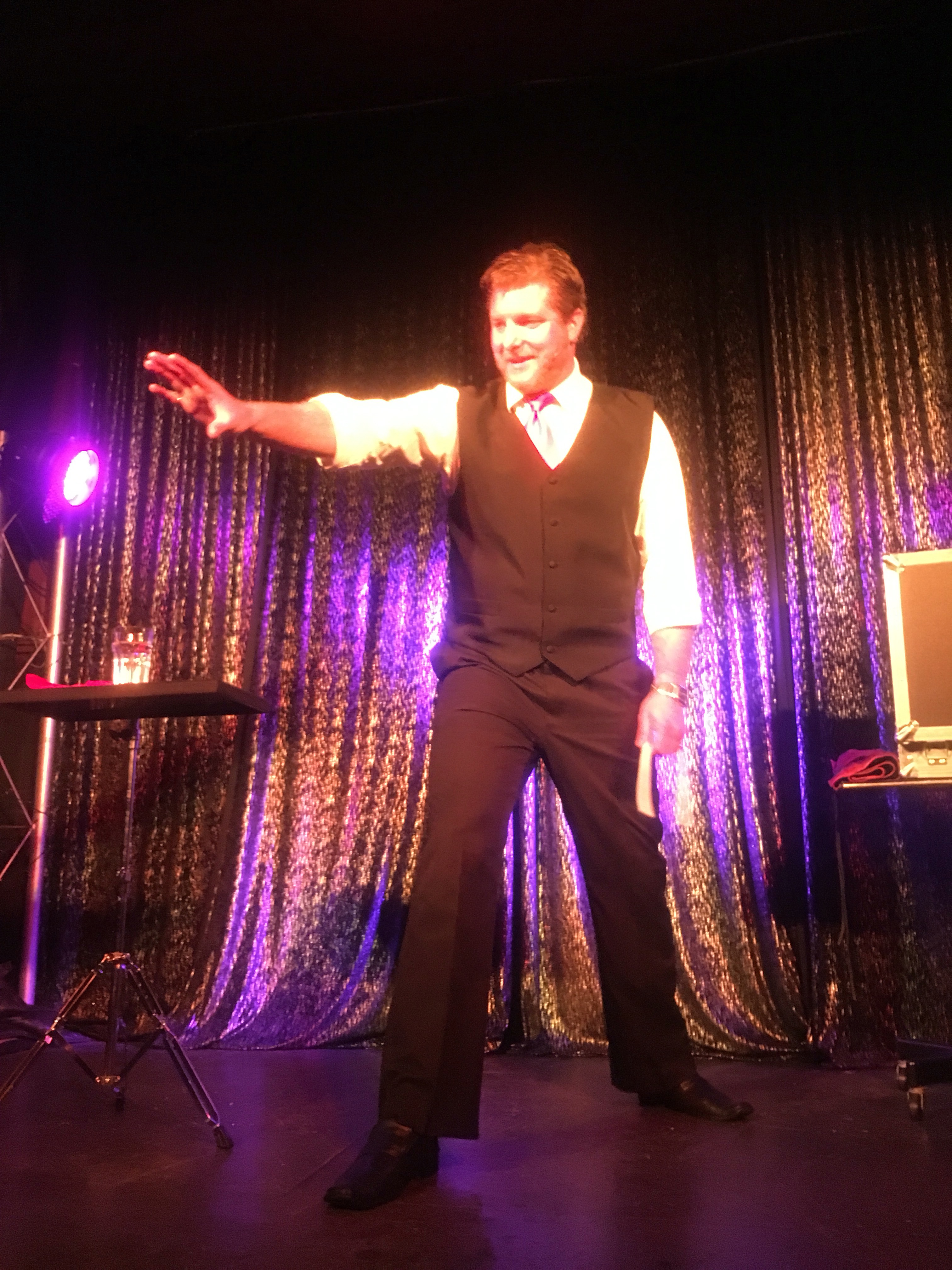 Tim Motley then reappeared with some entertaining mind reading and handwriting analysis, before introducing the next act – the energetic and talented Raymond Truong. I have been fortunate enough to see Raymond Truong perform many times, but for those who haven’t his acts are full of fantastic physical comedy, mime stunts and card manipulations. During this show, Raymond also involved some audience members in a hilarious ‘coin and bucket’ routine which had the audience laughing and cheering. You can’t help but laugh and smile during Raymond’s performances, as he brings an extra dimension to magic and has expertly timed physical comedy.