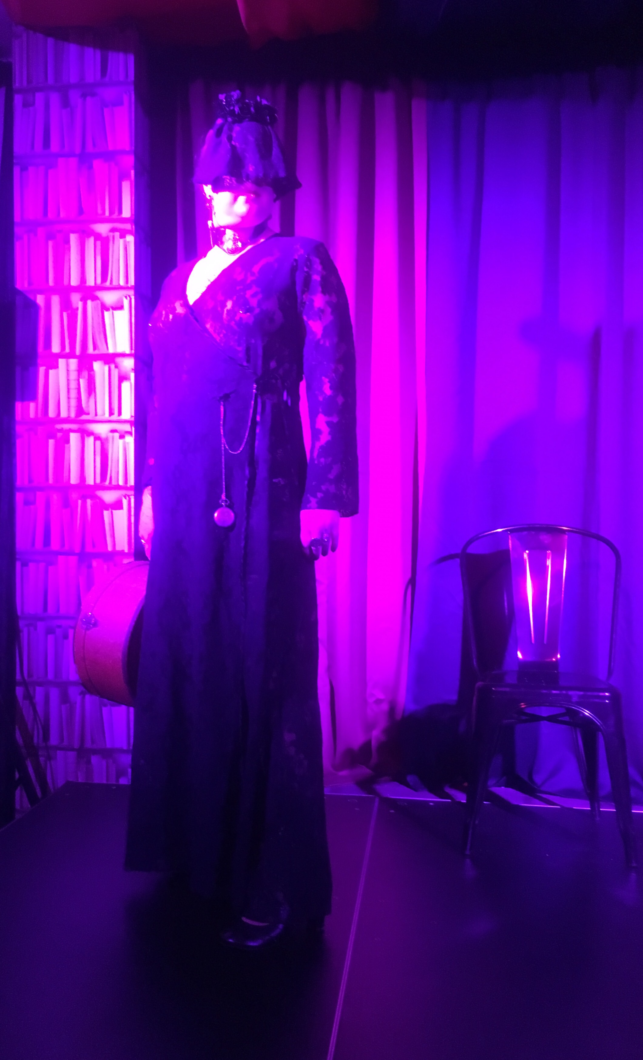 As the evening drew to a close the headline act, Kerryx, appeared in a sweeping lace outfit with a veil over her eyes and performed a ‘pain versus pleasure’ routine. Kerryx depicted a mysterious stranger travelling to unknown places, and explored the boundaries between tension and seduction. Set to a song with a pronounced beat, Kerryx used her hands and an assortment of ‘toys’ in her suitcase to explore tension and pain. During this set, Kerryx towered over her audience, and when she regarded the audience under her gaze we were unaware of this, as she was veiled. I must admit that I find this performance style unusual. While I’m sure Kerryx was in no danger or extreme pain during the performance, I couldn’t help but wince and grimace at some points. It can be a challenge to witness this performance style if you’re not accustomed to it. I also found this was a strange act to end the evening with as it brought such a different vibe with it, however I appreciate that this may have been deliberate – the performance style was certainly memorable!