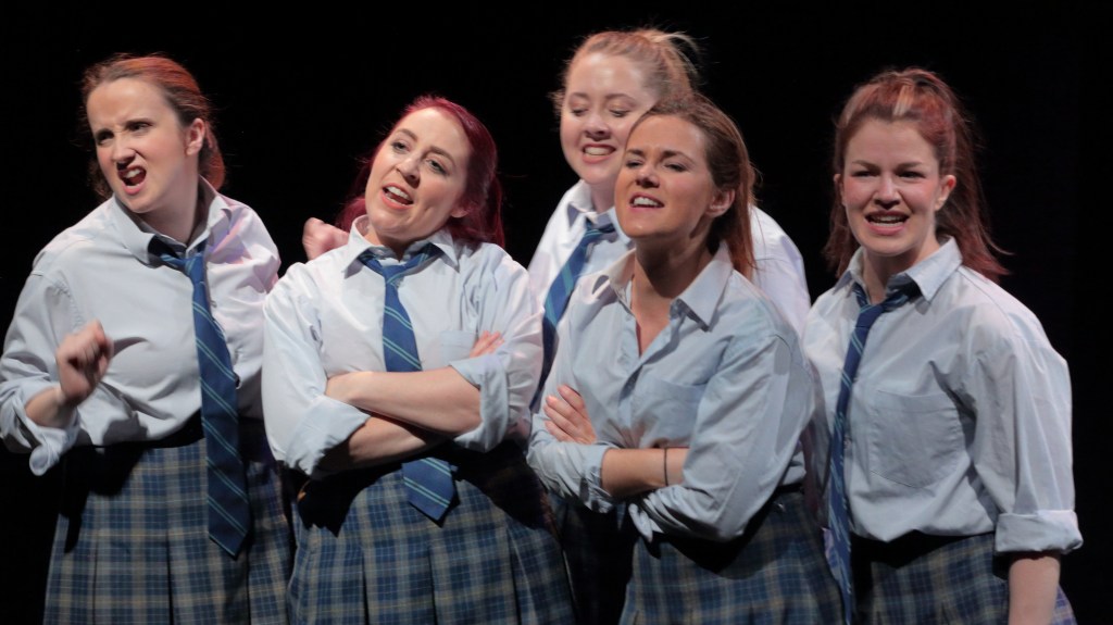 “Slut” took the audience back to their school days (both primary and secondary) as lived by the central character of Lolita (played by Reschelle O’Connor) and her friendship group. Whilst Lolita is the central character of this production, much of the dialogue is provided by her friends / her friendship group. I particularly enjoyed the childhood stories that each friend told the audience about Lolita and also enjoyed watching the friends “grow up” / the progression of time during the production. Alongside the fun stories and fun aspects of school days was a darkness that her friends could see was enveloping Lolita, as Lolita was being drawn into dangerous situations and circumstances. The core themes explored by this production remain extremely relevant and topical: from the unwanted attention that females receive (even as children), to rape/ questions of consent and domestic violence. Watching the progression of Lolita’s life (as seen through her friends) was like seeing a train crash in slow motion – Lolita’s outcome comes as no surprise, however the tragedy of her situation isn’t diminished. Again, this production was superbly cast with all cast members altering their behaviour, outfits and mannerisms to depict the passage of time. Reschelle O’Connor (Lolita) negotiated challenging scenes well, without diminishing or trivialising the serious nature of the core themes being explored.